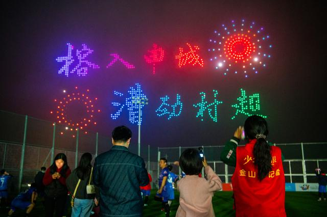金山区供图当中场休息哨声响起,夜空成了另一个“舞台”。无人机编队带着足球腾空而起,与绚丽灯光秀交织,光影流转间勾勒出乡村振兴的图景,看台上手机闪光灯如星海般亮起。主办方还贴心准备了新疆特色美食与时令鲜果,让观众在观赛之余,尽情品尝舌尖上的乡村风味。